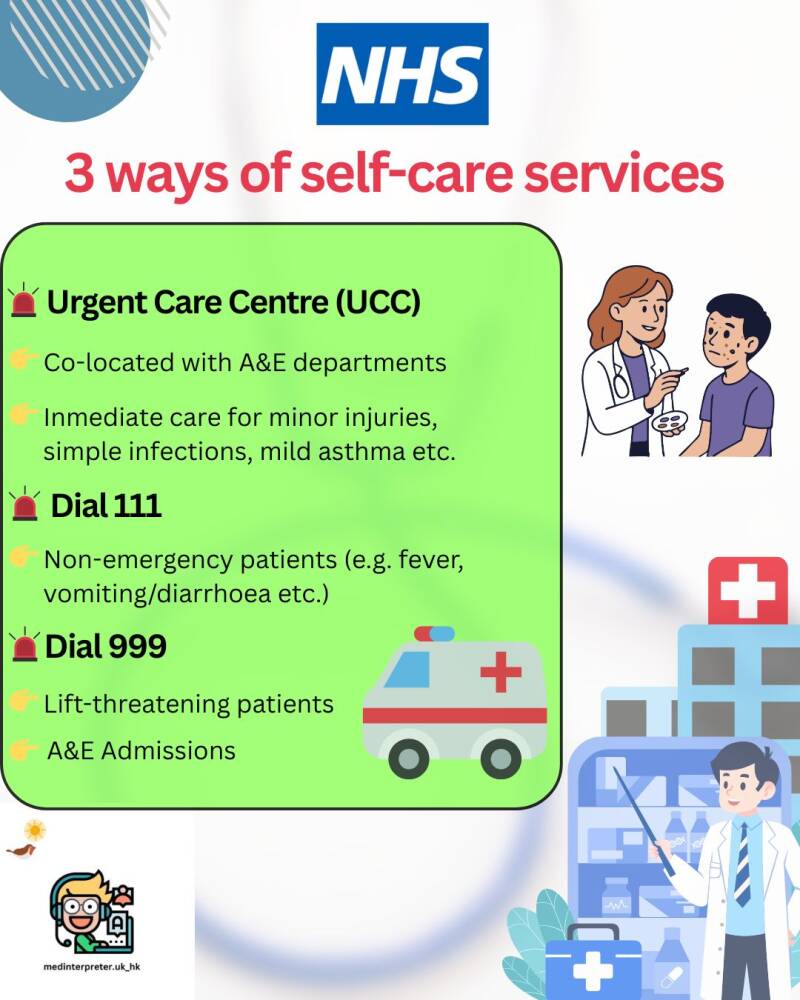 1.緊急護理中心 Urgent Care Centre (UCC)👉鄰近醫院急症室,可即時到場應診,適合輕度受傷、普通受感染、輕微哮喘、普通過敏反應患者